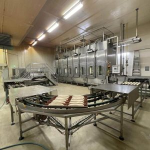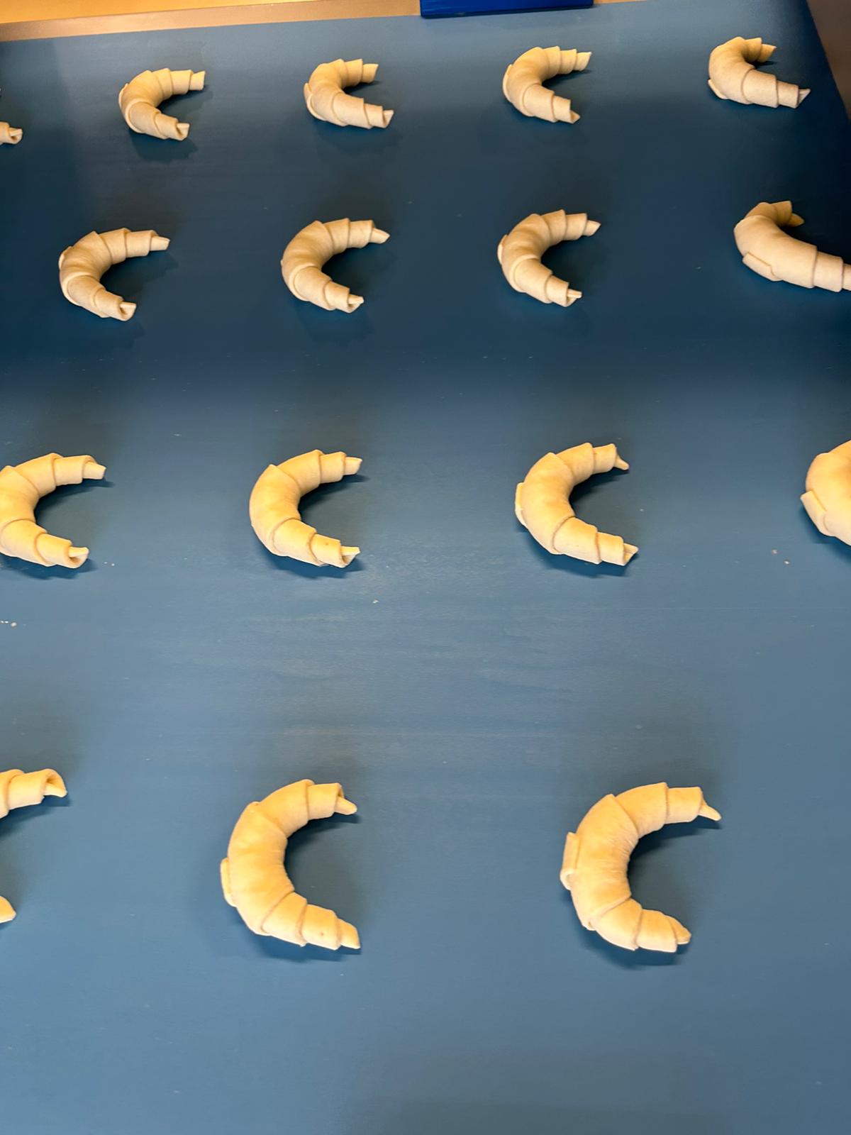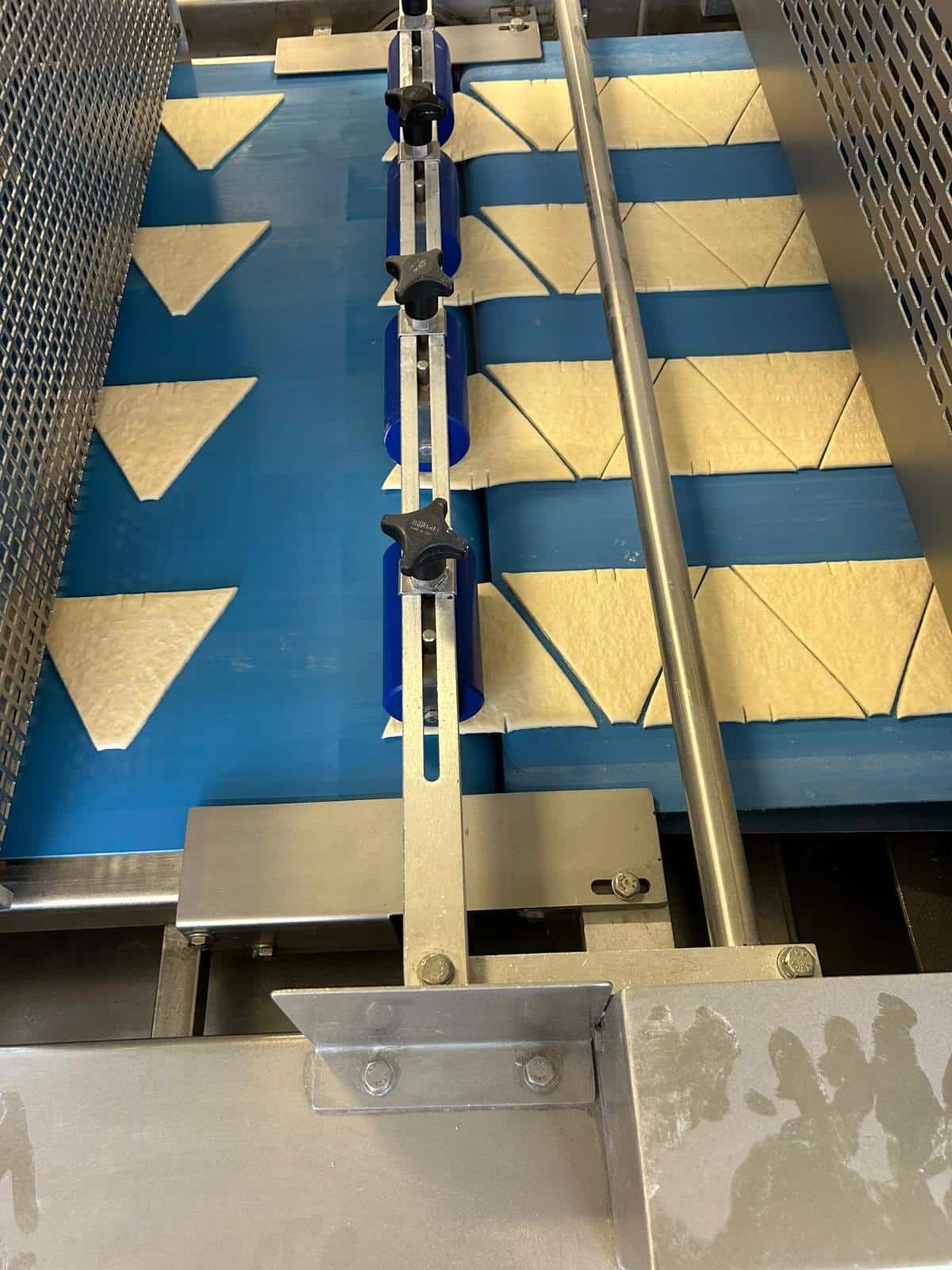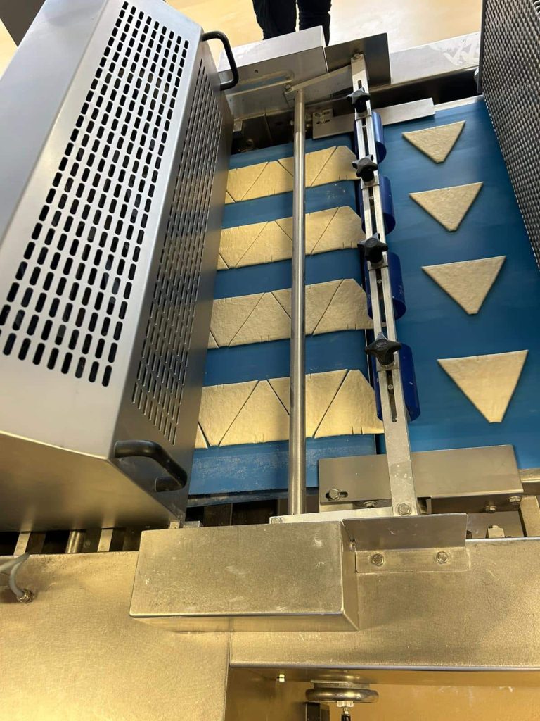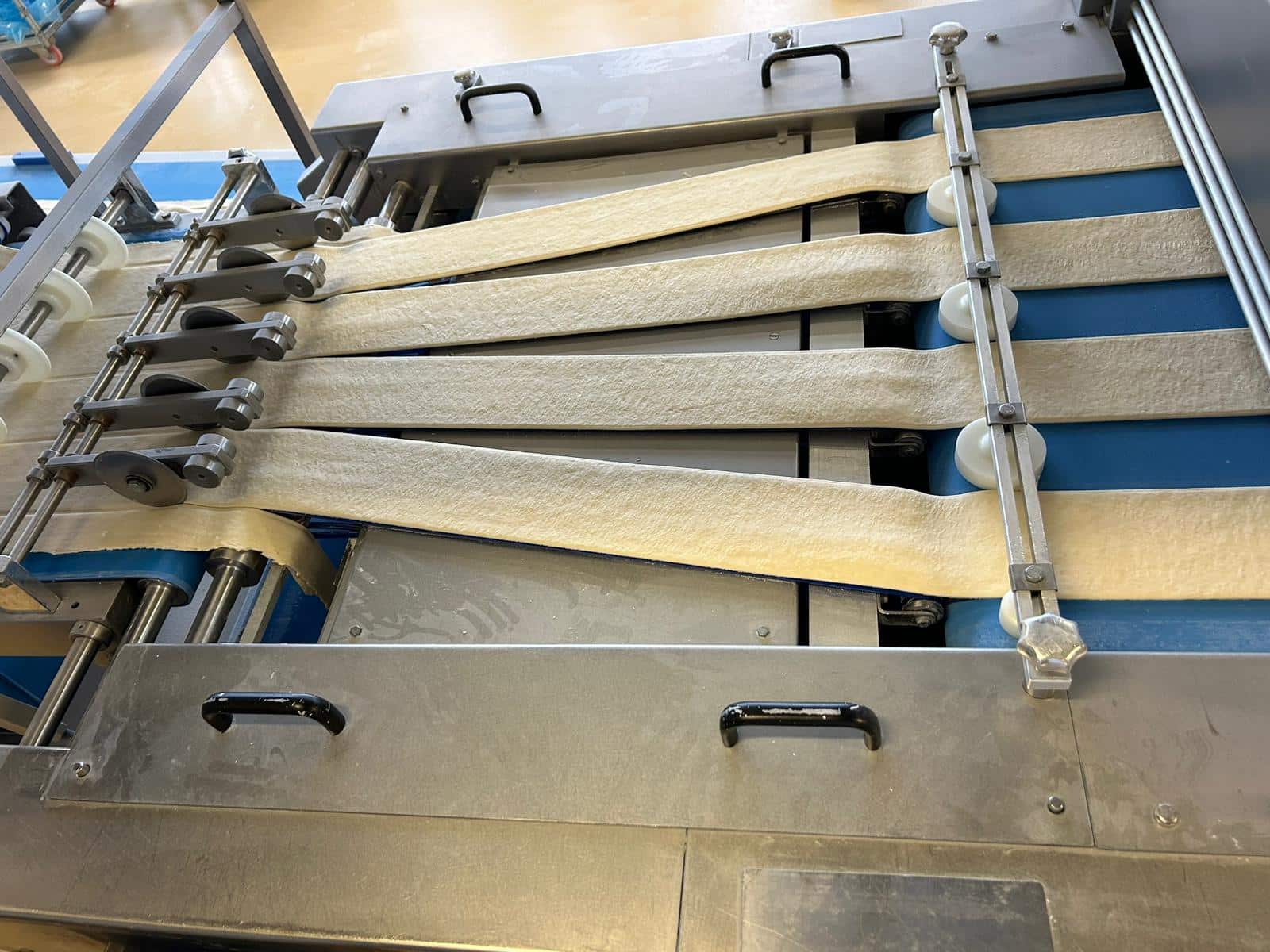 This Rademaker croissant line is a fully automatic line capable of manufacturing multiple different weight ranges and sizes of Croissant, ranging from 32 – 117 gram. The line produces bent unfilled croissant at a capacity of up to 12.000 pcs/h depending on the chosen product size. It is easy to operate with modern Siemens controls and features all components which are needed to form your laminated dough into Croissants.