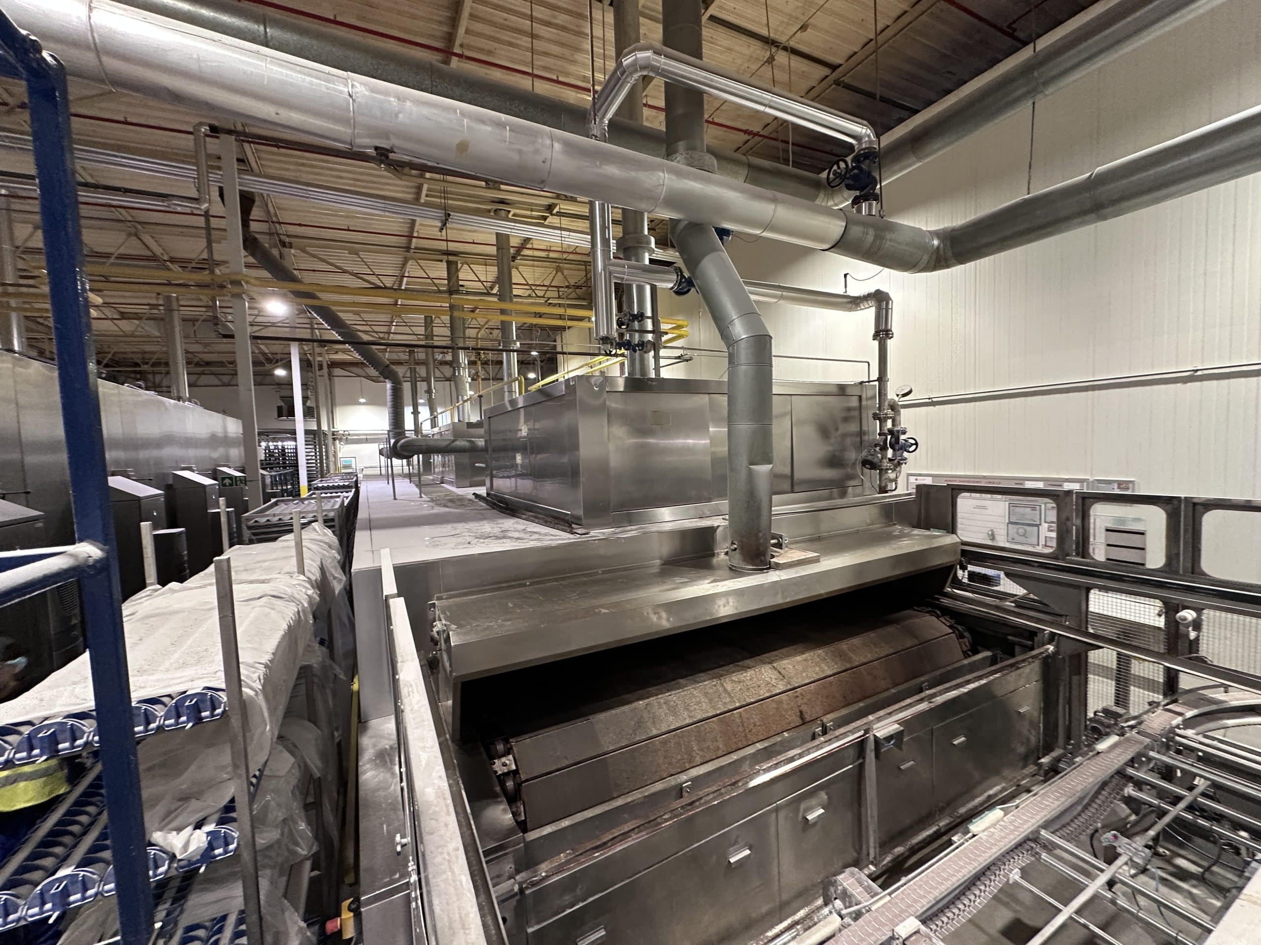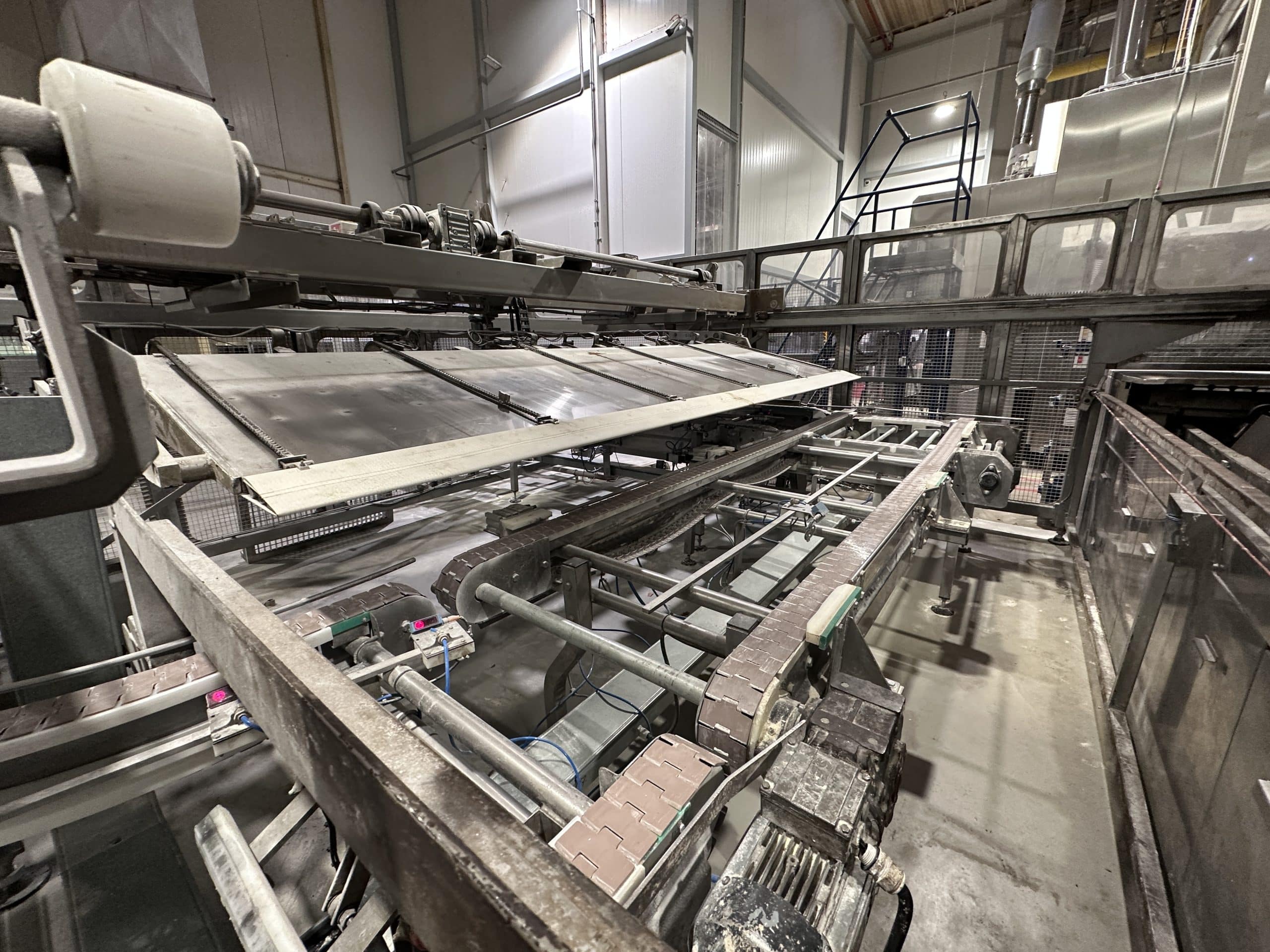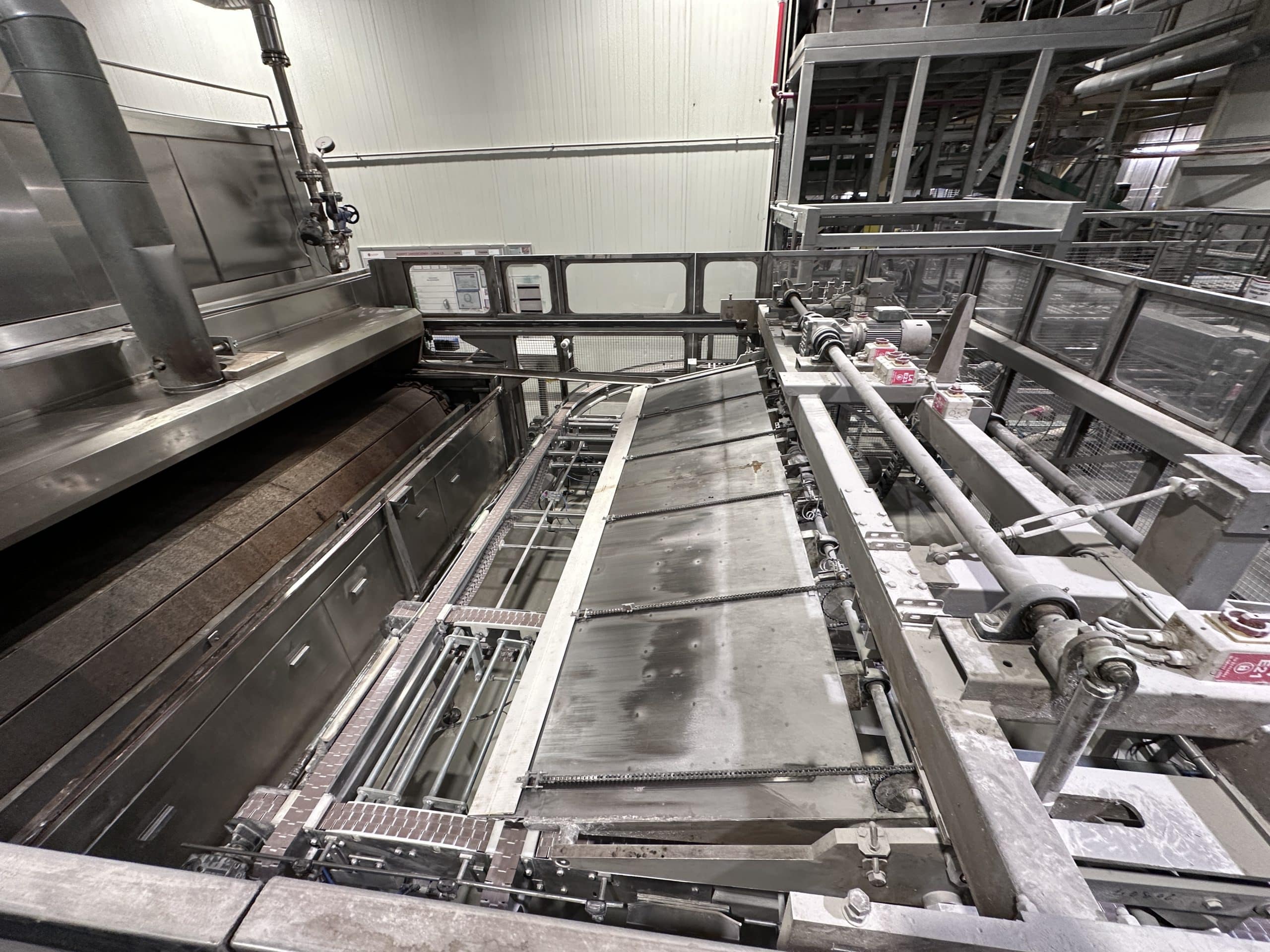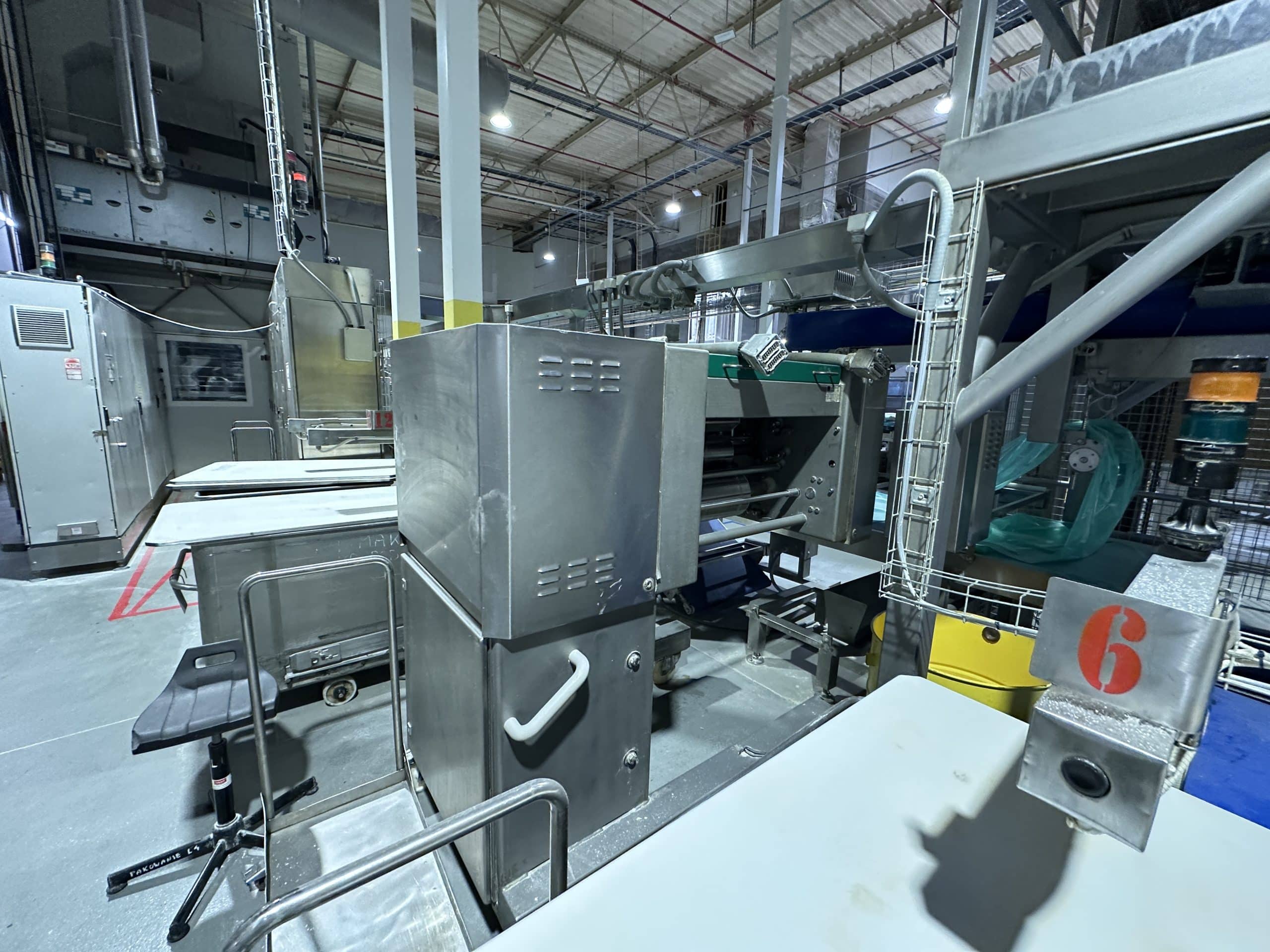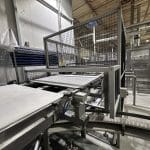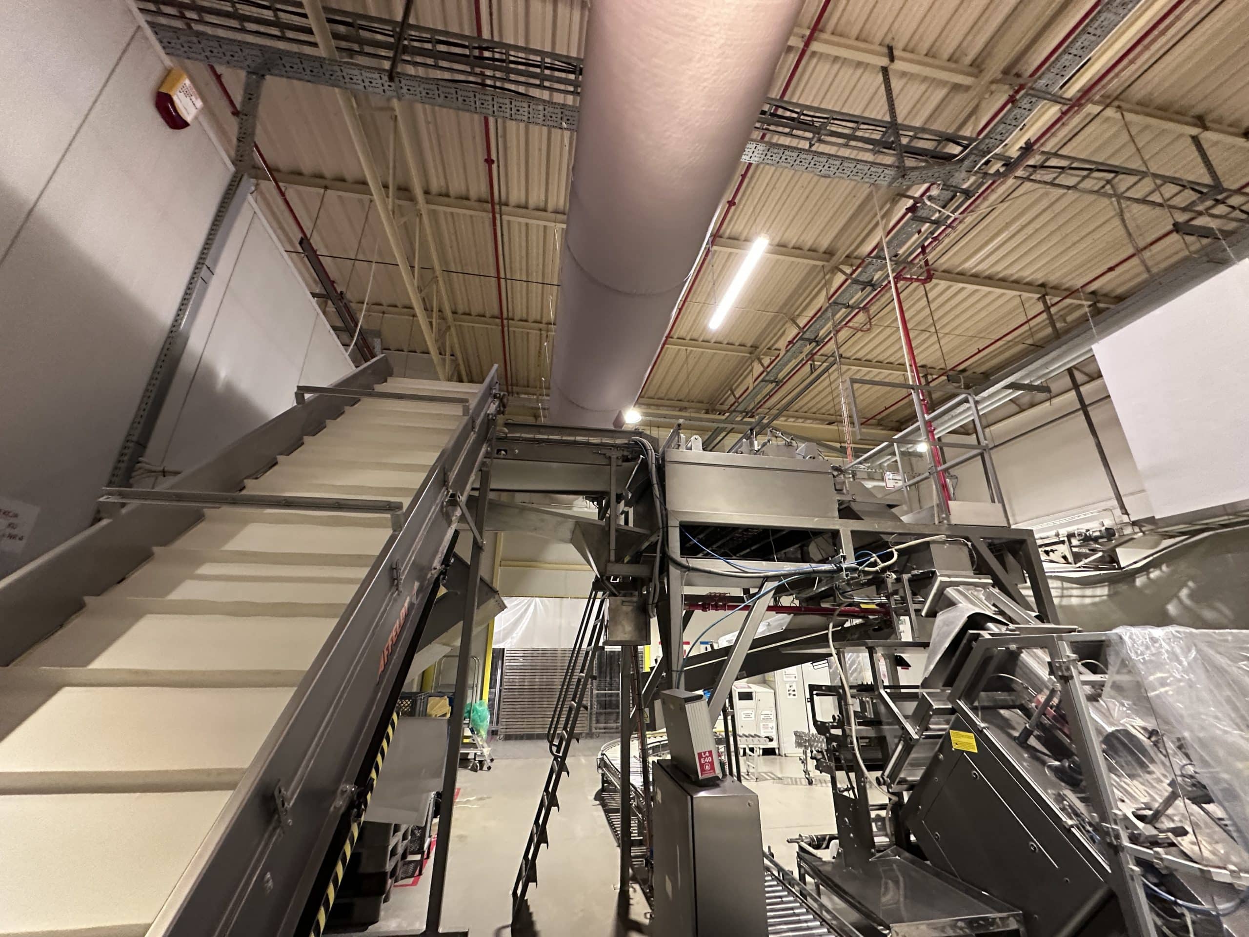 Automatische Ciabatta-/Baguette-Linie – Mecatherm / Fritsch. Ein modernes, vollständig integriertes System für die kontinuierliche Produktion von Ciabatta-Teig mit hohem Wasseranteil. Die Linie verfügt über einen MECATHERM-Tunnelofen mit Steinband für gleichmäßiges Backen, der die charakteristische knusprige Kruste und das luftige, unregelmäßige Innenvolumen liefert. Die Teigverarbeitung ist auf der FRITSCH-Linie vollständig automatisiert und erhält Struktur und Porosität, während Portionen präzise geteilt, geformt und angeordnet werden. Thermische Module, darunter ein MECATHERM-Spiralkühler und ein Gefriertunnel, stabilisieren und bewahren die Produktqualität. Diese Konfiguration gewährleistet hohe Wiederholbarkeit, Produktionsflexibilität und gleichbleibend exzellente Ciabatta-Brötchen.