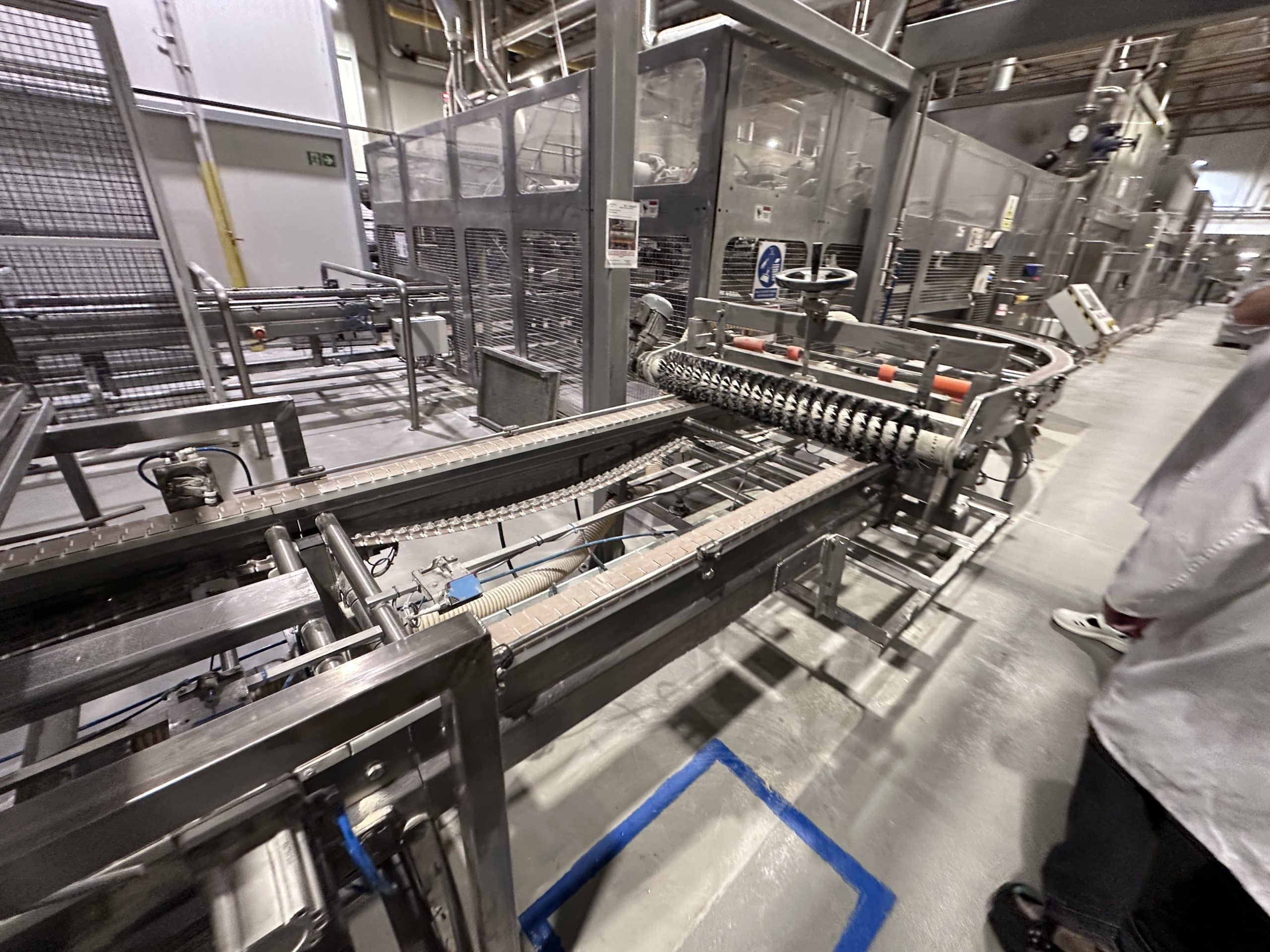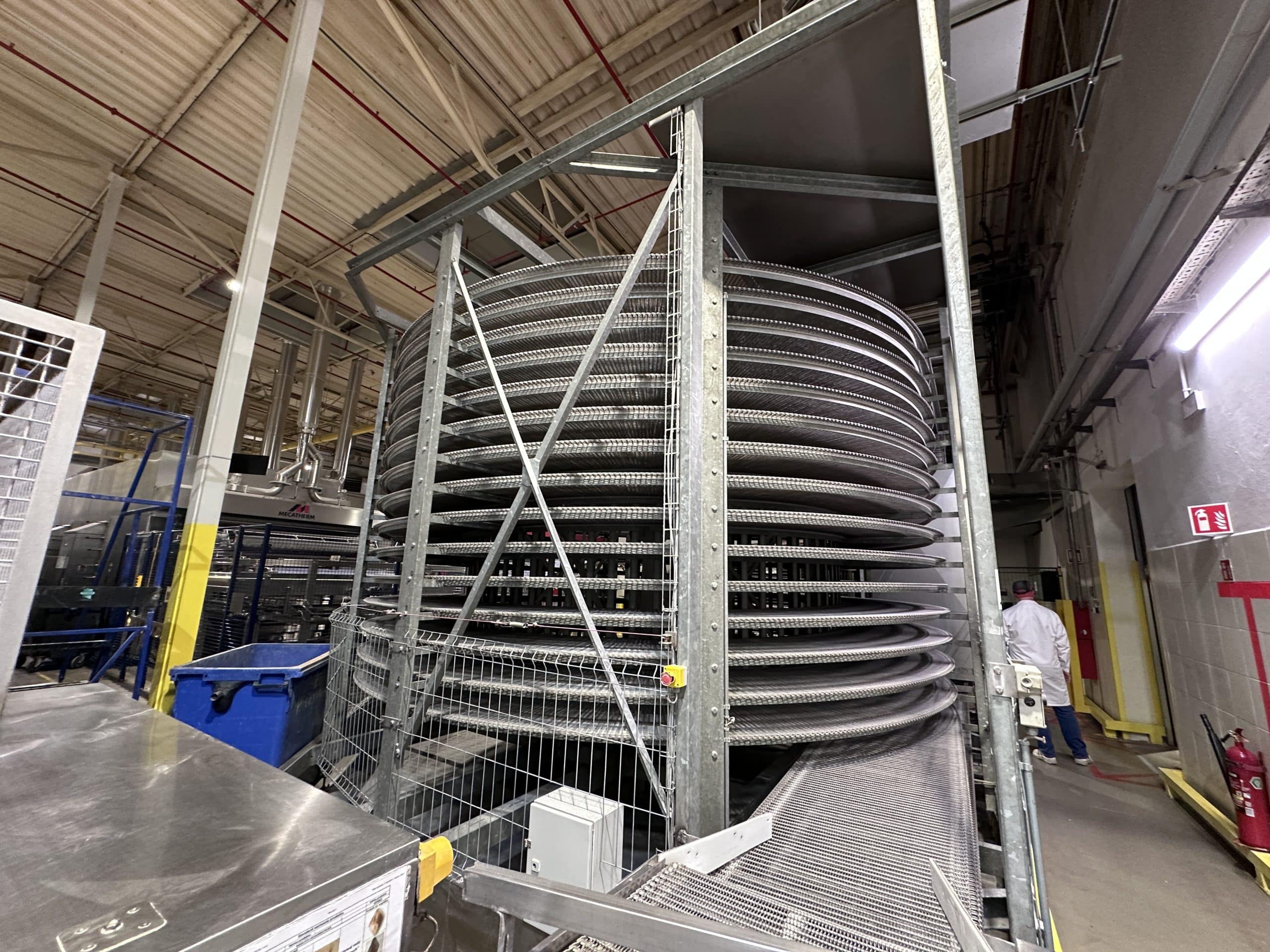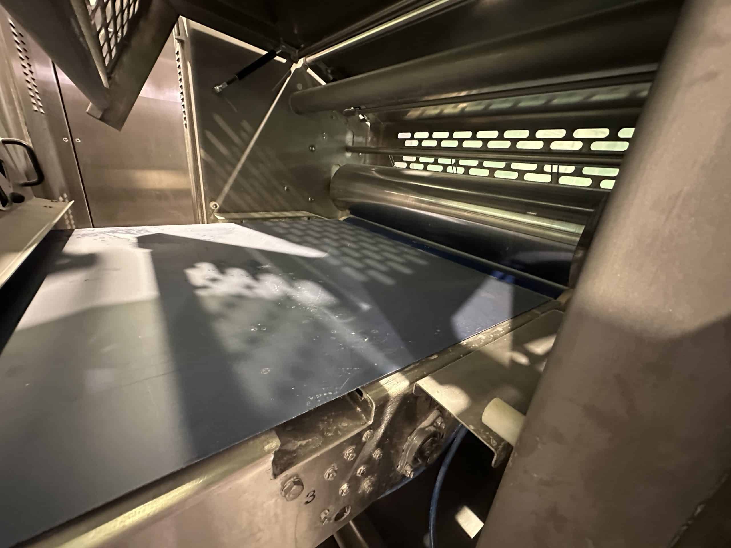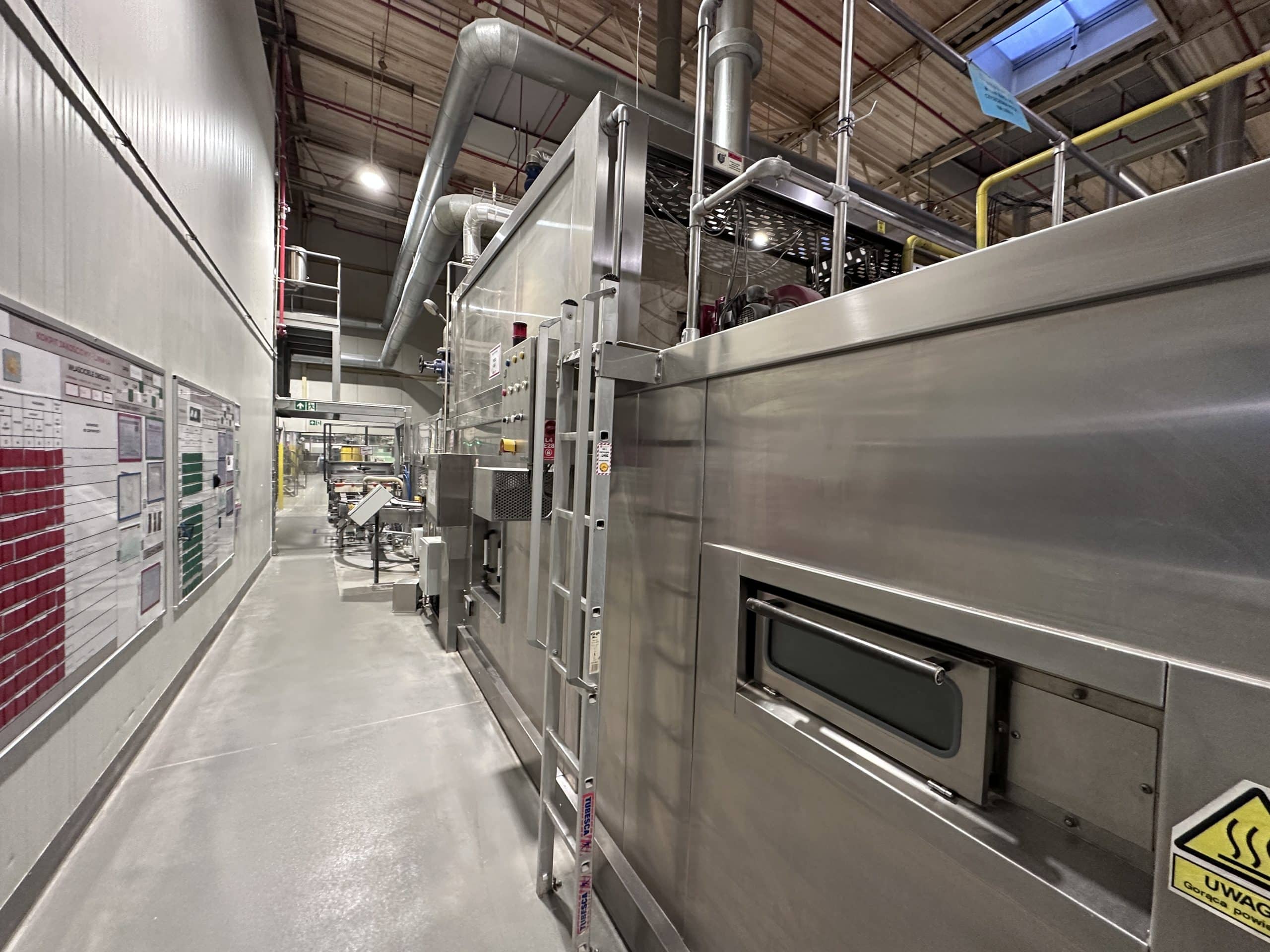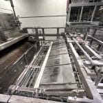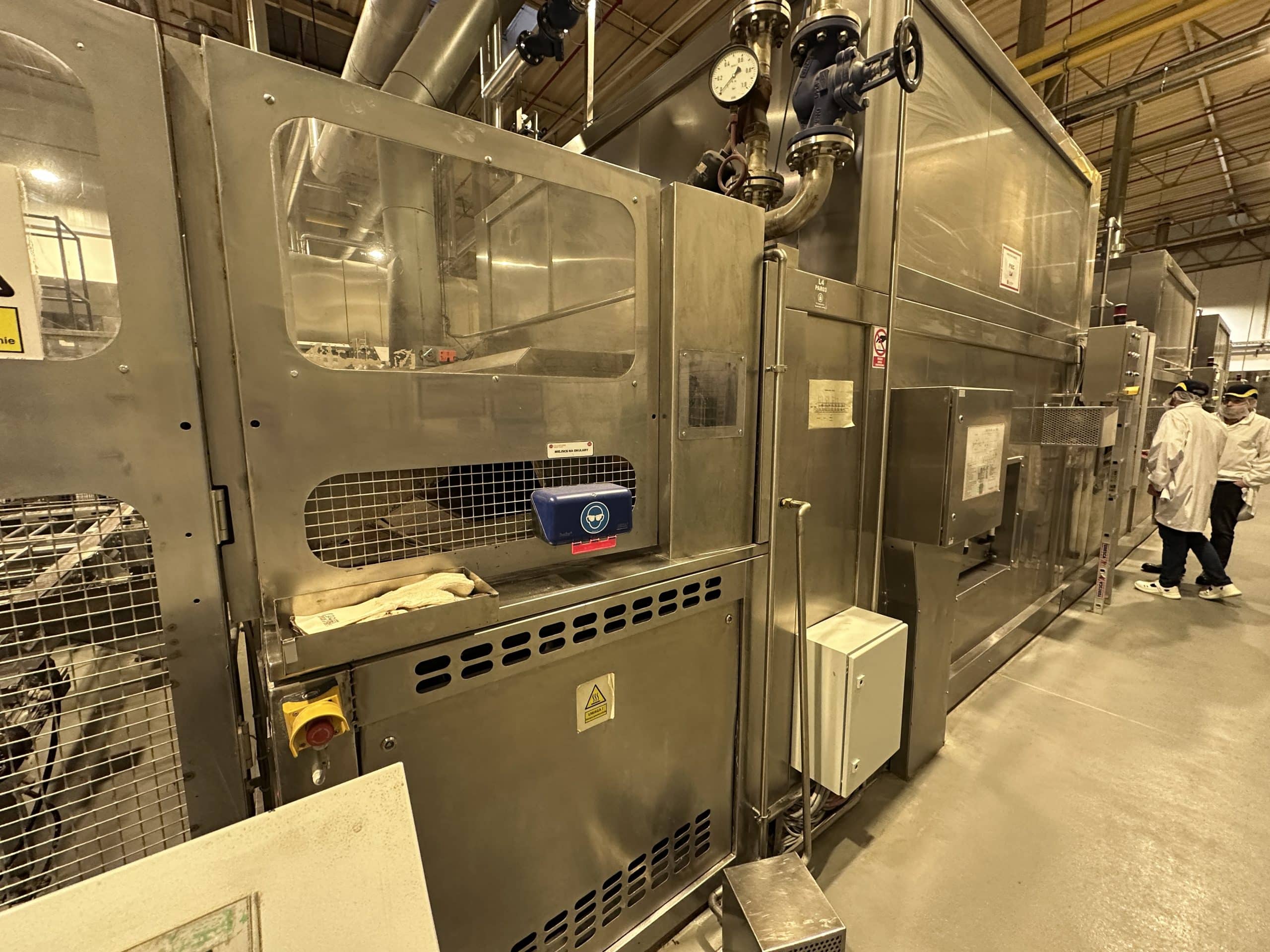 Automatische Ciabatta-/Baguette-Linie – Mecatherm / Fritsch. Ein modernes, vollständig integriertes System für die kontinuierliche Produktion von Ciabatta-Teig mit hohem Wasseranteil. Die Linie verfügt über einen MECATHERM-Tunnelofen mit Steinband für gleichmäßiges Backen, der die charakteristische knusprige Kruste und das luftige, unregelmäßige Innenvolumen liefert. Die Teigverarbeitung ist auf der FRITSCH-Linie vollständig automatisiert und erhält Struktur und Porosität, während Portionen präzise geteilt, geformt und angeordnet werden. Thermische Module, darunter ein MECATHERM-Spiralkühler und ein Gefriertunnel, stabilisieren und bewahren die Produktqualität. Diese Konfiguration gewährleistet hohe Wiederholbarkeit, Produktionsflexibilität und gleichbleibend exzellente Ciabatta-Brötchen.