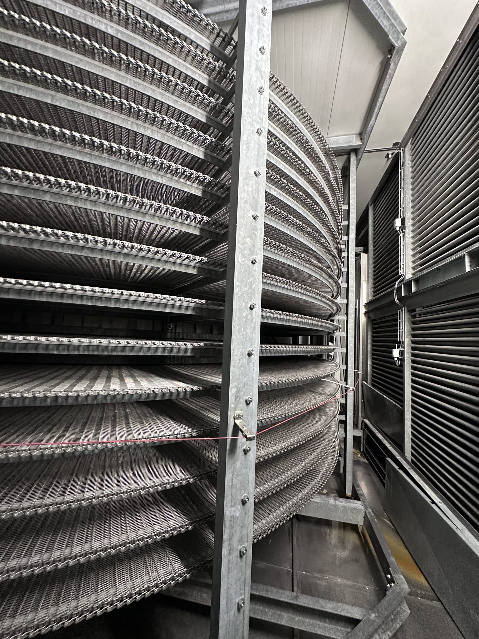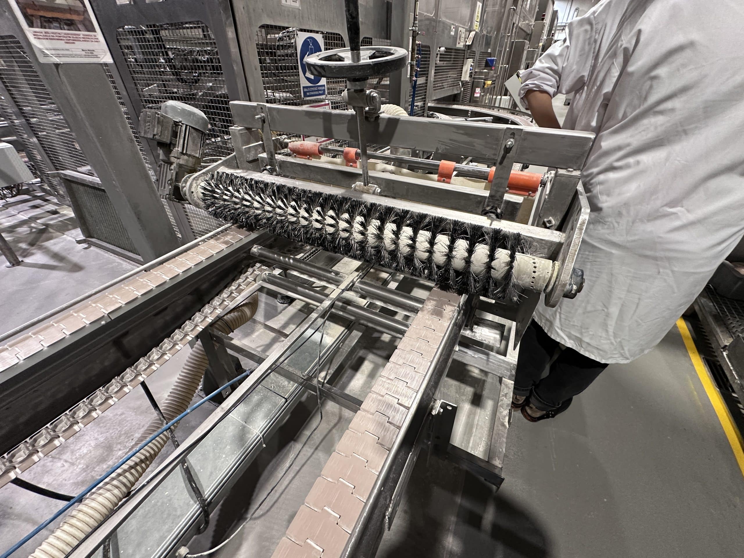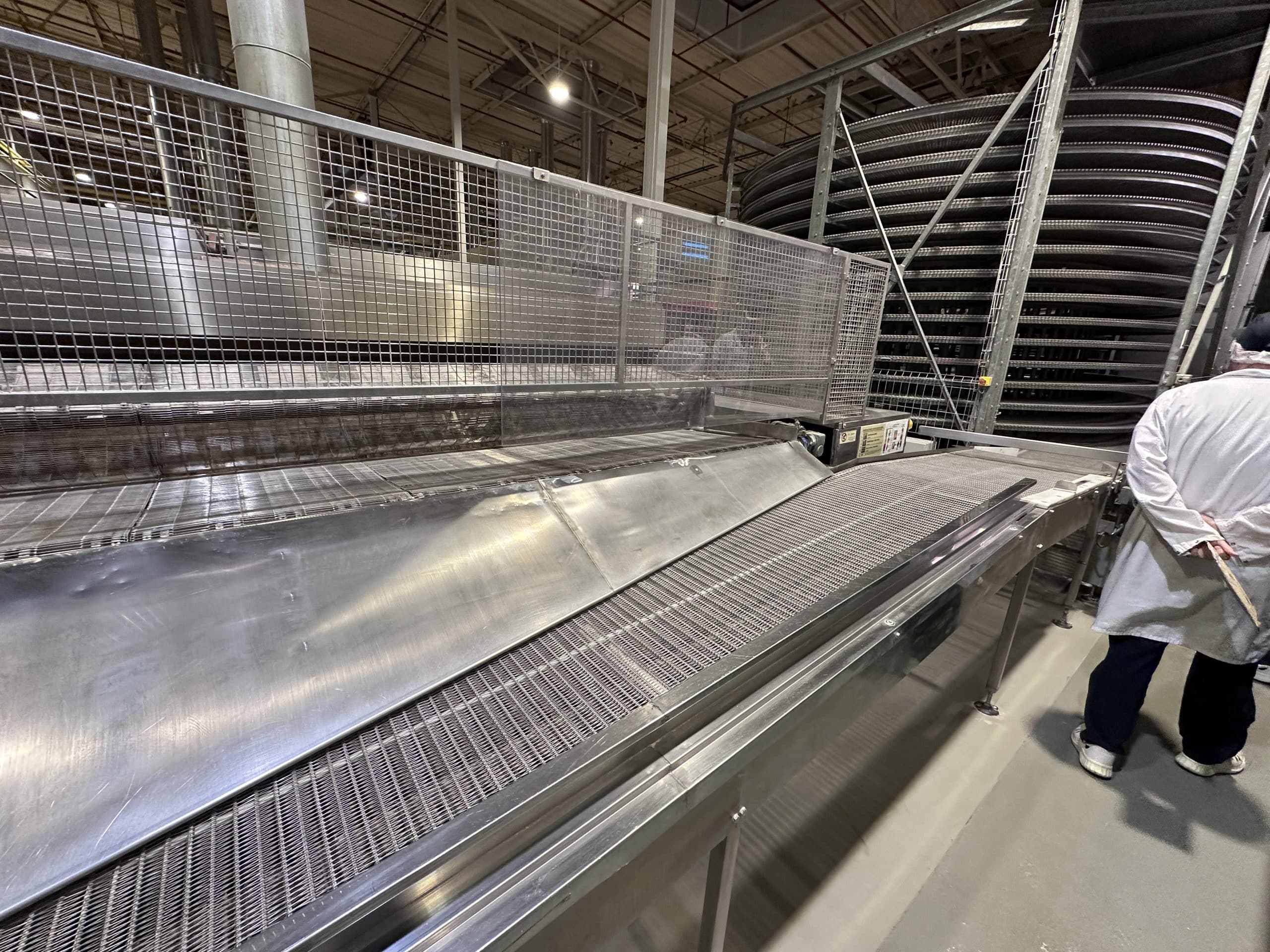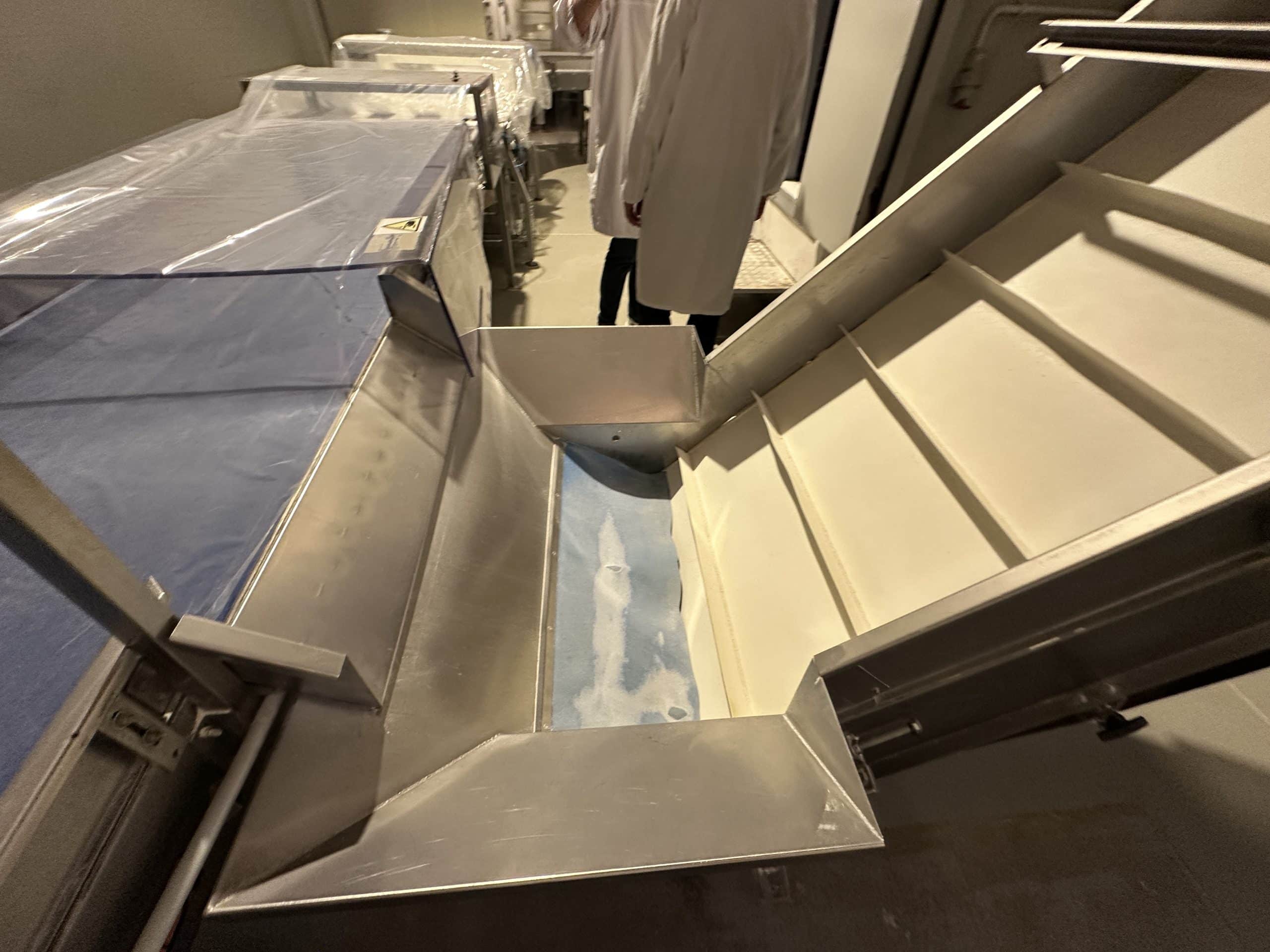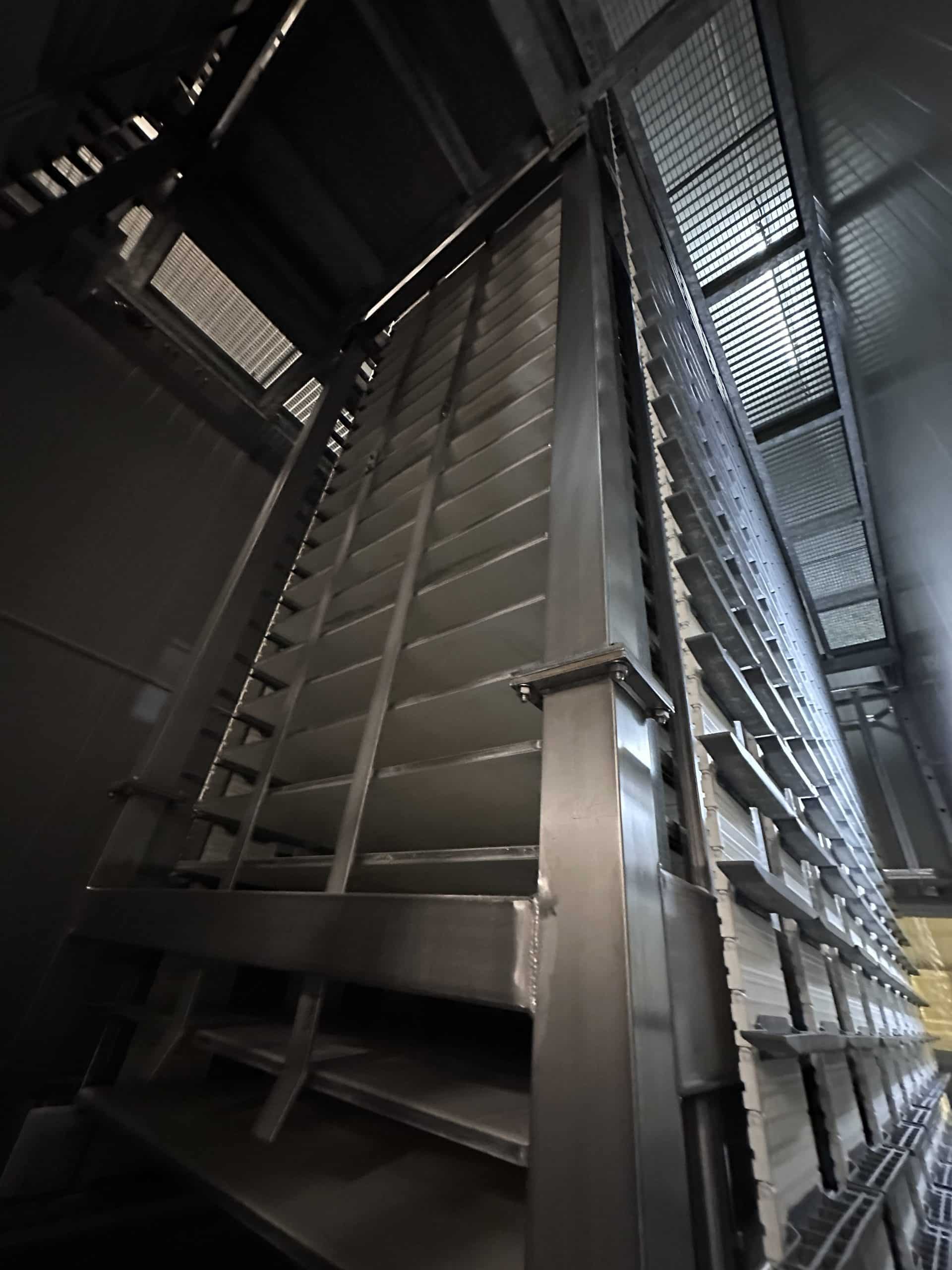 Automatische Ciabatta-/Baguette-Linie – Mecatherm / Fritsch. Ein modernes, vollständig integriertes System für die kontinuierliche Produktion von Ciabatta-Teig mit hohem Wasseranteil. Die Linie verfügt über einen MECATHERM-Tunnelofen mit Steinband für gleichmäßiges Backen, der die charakteristische knusprige Kruste und das luftige, unregelmäßige Innenvolumen liefert. Die Teigverarbeitung ist auf der FRITSCH-Linie vollständig automatisiert und erhält Struktur und Porosität, während Portionen präzise geteilt, geformt und angeordnet werden. Thermische Module, darunter ein MECATHERM-Spiralkühler und ein Gefriertunnel, stabilisieren und bewahren die Produktqualität. Diese Konfiguration gewährleistet hohe Wiederholbarkeit, Produktionsflexibilität und gleichbleibend exzellente Ciabatta-Brötchen.