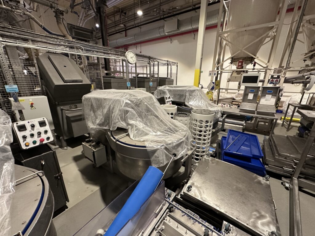 Der Backbereich besteht aus einer Ofenanlage Mecatherm bestehend aus 2 Modulen Typ FMP Baujahr 2003, gefolgt von einer Kühlstufe mit Stepkühler und Capway Stepfroster. Nach dem Back- und Kühlprozess werden die Produkte durch automatisierte Systeme weitergeführt.