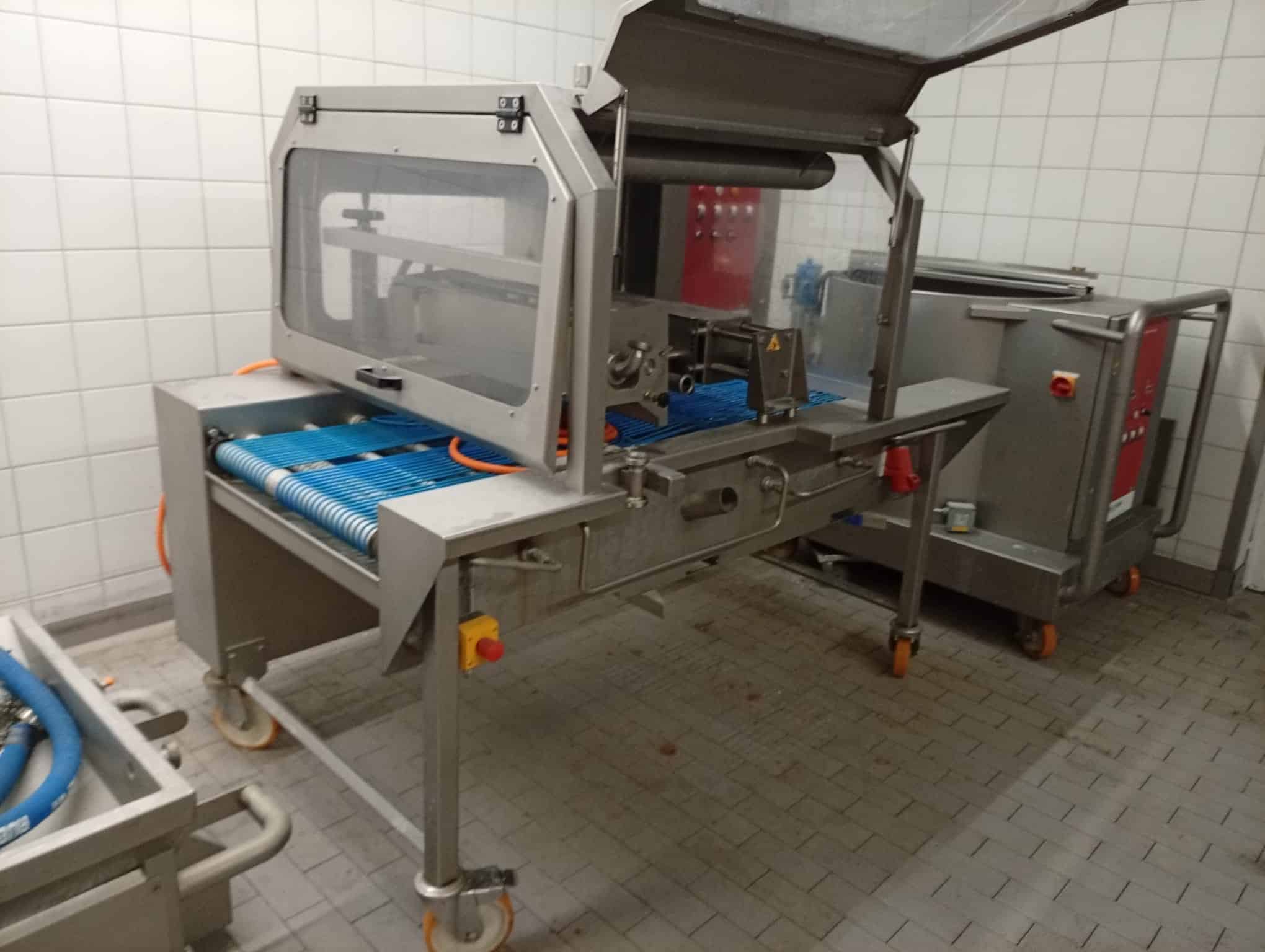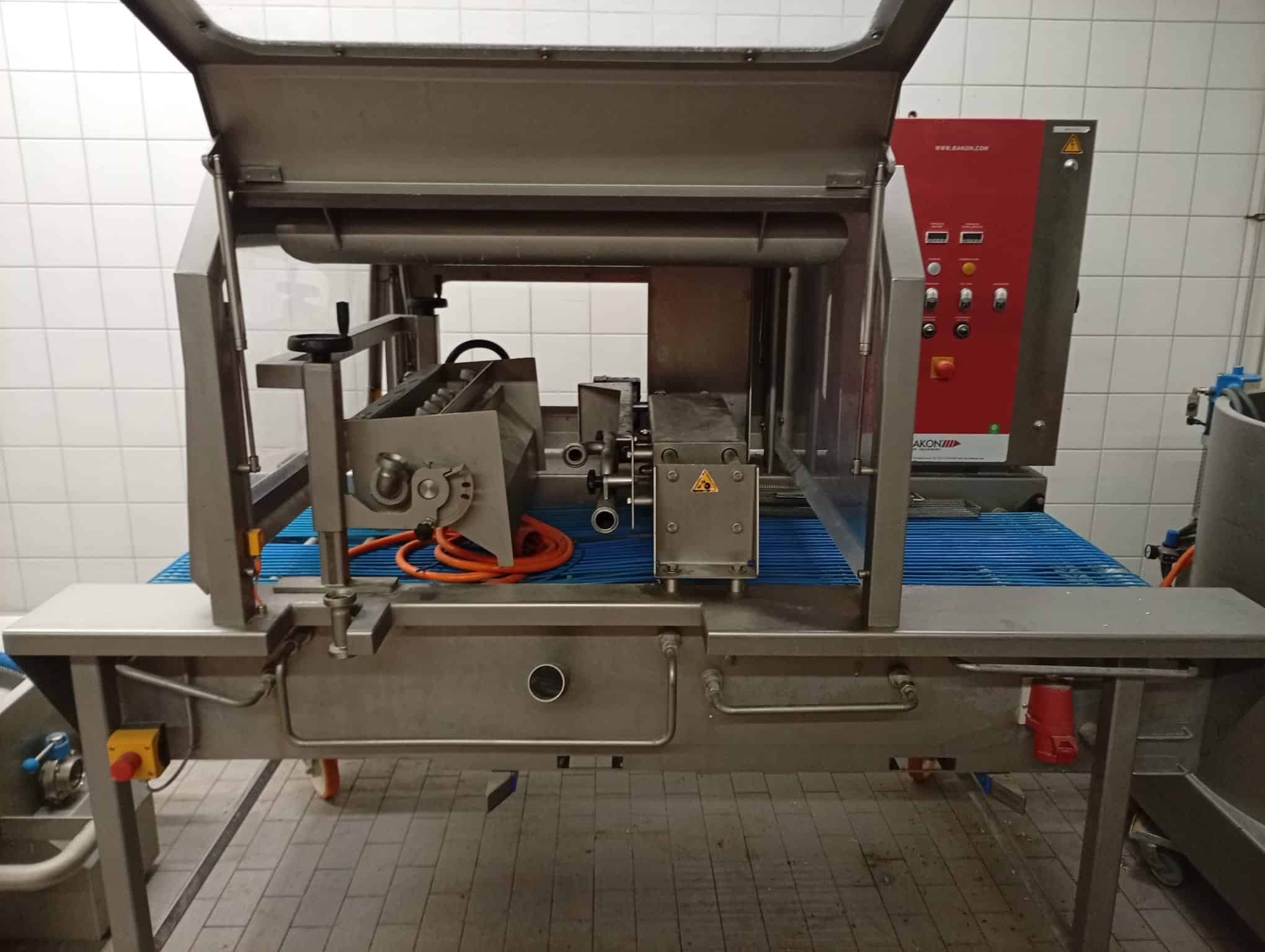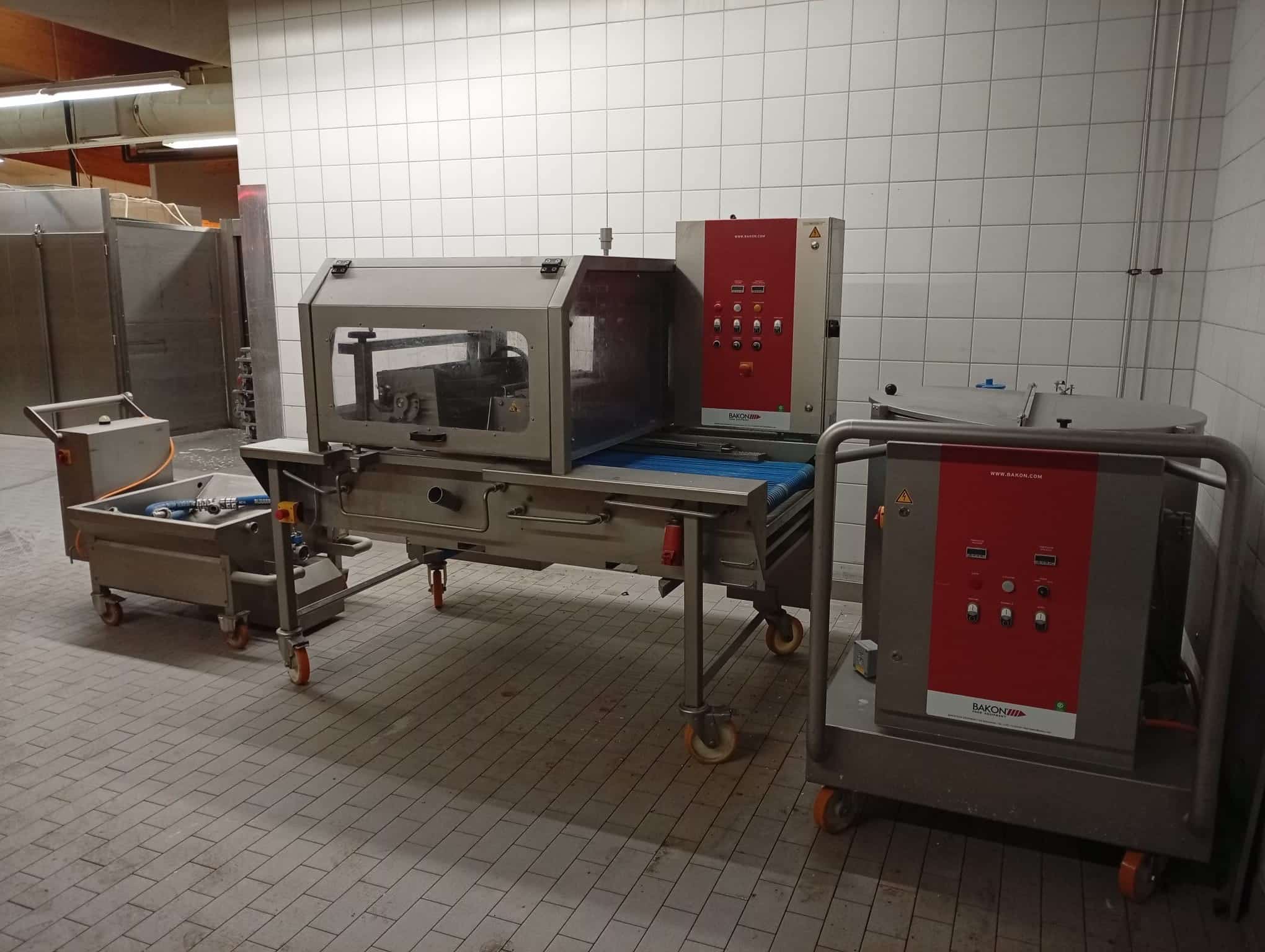 Die Bakon Fondant-Enrober-Maschine mit Bandbreite: 600 mm, inklusive Fondant Tank mit Heizung und inklusive Schlauchheizung. Pumpengeschwindigkeit regulierbar, Pumpe und Auffangbehälter ausfahrbar, 5 Düsen. Sie ermöglicht ein präzises und effizientes Überziehen von Kuchen, Gebäck und anderen Süßwaren.
