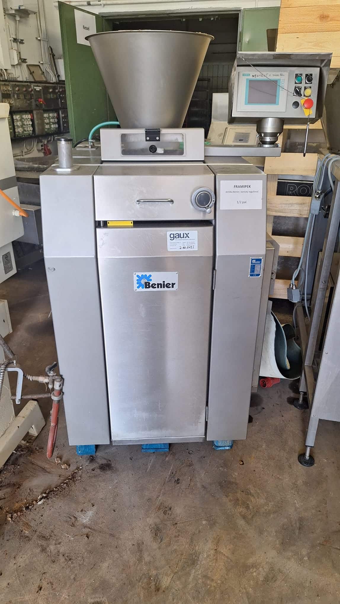 Benier Dough Assist Major (2004) is a dough divider with touchscreen control that allows automatic adjustment of weight and precise piece counting. It features recipe storage to facilitate repetitive production. Designed for industrial processes, it ensures efficient and uniform dough division.
