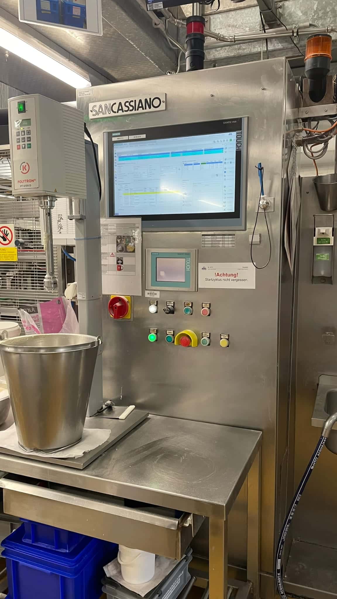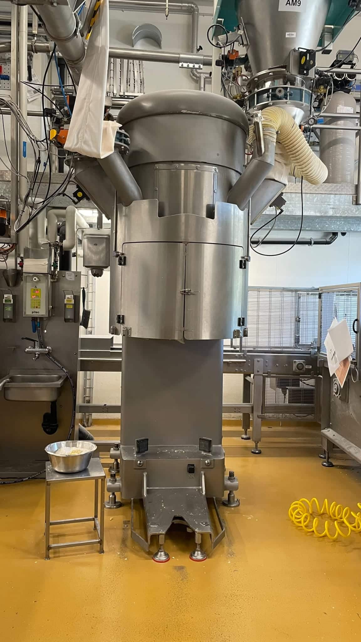 La amasadora de doble espiral Sancassiano PLT C está equipada con 2 cubas extensibles, fabricadas en acero inoxidable, cada una con un diámetro de 79 cm y una capacidad de 300 kg. Dispone de control Siemens, gabinete eléctrico separado, almacenamiento de recetas y un diseño fácil de limpiar. Además, la máquina está preparada para la dosificación automática desde silos, ofreciendo un rendimiento fiable en entornos industriales.