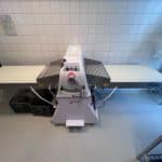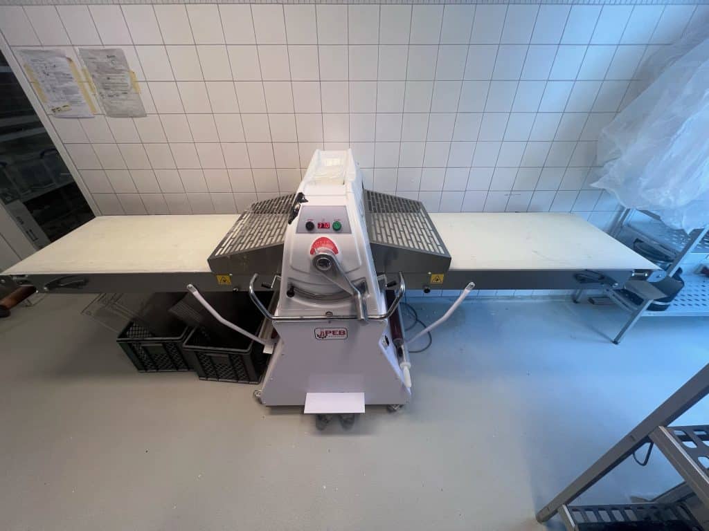 Esta sencilla laminadora PEB realiza fácilmente todas las tareas habituales de producción de pastelería. Cuenta con un sistema de control analógico fácil de usar y una pequeña pantalla digital que indica el grosor de la lámina de masa. Incluye mesas plegables de acero inoxidable y ajuste manual de altura.