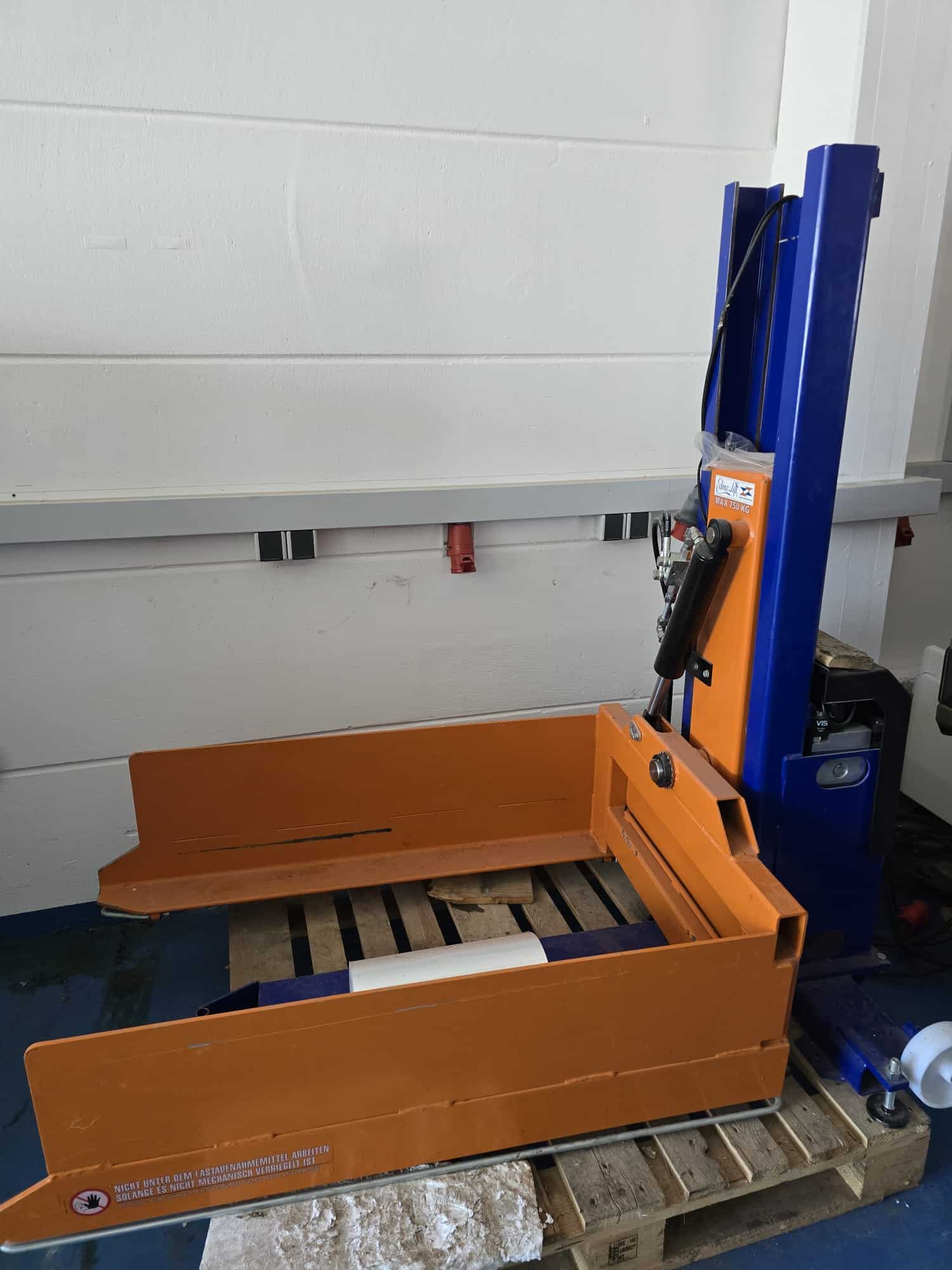 The Edmolift TSLN750 pallet lifter has a maximum load capacity of 750 kg and a lifting stroke of 900 mm. With a lowest height of 70 mm, it ensures safe and efficient handling of pallets in warehouses and production environments.