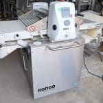 The Rondo Combi SKO6113 sheeter processes dough blocks of up to 8 kg into uniform dough sheets. Equipped with a digital control panel, it offers 30 program memories for automatic rolling and 20 for dough forming, ensuring precision and consistency in production.